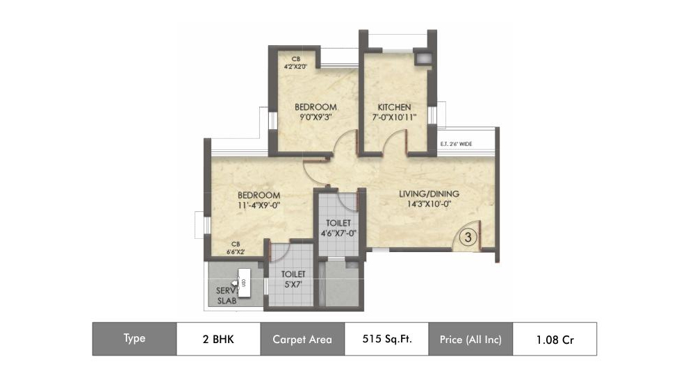| 2 BHK Prime | 504 Sq.ft. | Click for Price |
